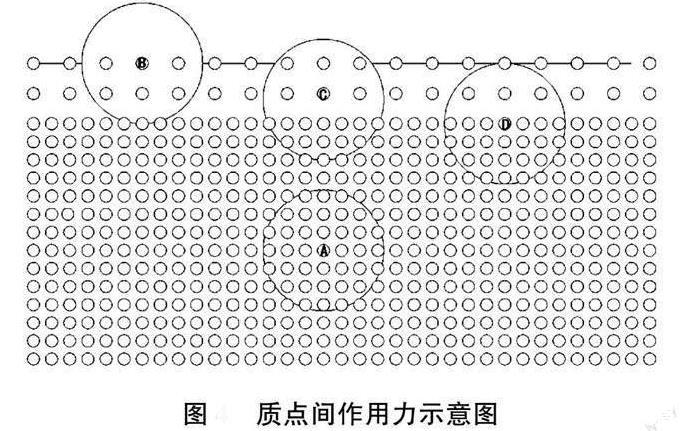 如果以質(zhì)點(diǎn)中心為圓心,10r0為半徑作一球面,顯然只有在這個球面內(nèi)的質(zhì)點(diǎn)才對位于球心上的質(zhì)點(diǎn)有作用力。熔體的表面層厚度等于質(zhì)點(diǎn)作用球半徑的一層,在表面層內(nèi)熔體質(zhì)點(diǎn)受力的情況跟熔體內(nèi)部的質(zhì)點(diǎn)的受力情況有所不同。由圖2可見,位于熔體內(nèi)部的質(zhì)點(diǎn)A受到周圍對稱分布的質(zhì)點(diǎn)的作用,其合力為0。熔體表面層質(zhì)點(diǎn)上下分布對稱性被打破,處于表層內(nèi)的熔體質(zhì)點(diǎn)B、C和D都受到了一個指向熔體內(nèi)部的力的作用從而向熔體內(nèi)部移動,使得質(zhì)點(diǎn)間距離減小,引力轉(zhuǎn)化為斥力,最終到達(dá)平衡狀態(tài)。在平行熔體表面的方向,熔體表面層內(nèi)的質(zhì)點(diǎn)分布是均勻的,只是間距比較大,質(zhì)點(diǎn)間作用力表現(xiàn)為引力,這便是熔體的表面張力。由于表面張力的作用,質(zhì)點(diǎn)之間的距離減小,使得熔體表面積減小,而一定體積的熔體中球體的表面積最小,所以熔體表面有形成球面的趨勢,但這種趨勢會受重力的影響而改變。重力是所有組成熔體的質(zhì)點(diǎn)所受的力的合力,而表面張力只是表面一層質(zhì)點(diǎn)間的引力,表面張力相對于重力而言微乎其微,所以對于大體積的熔體,重力作用遠(yuǎn)大于表面張力作用,液面呈現(xiàn)平面。對于小體積熔體來說,組成熔體總的質(zhì)點(diǎn)數(shù)較少,表面張力已接近重力,甚至超過重力,使得液面呈現(xiàn)弧形甚至球形。上述的釉滴實(shí)驗(yàn)可以證實(shí)這點(diǎn)。