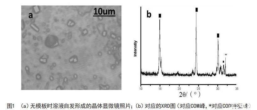 采用XRD表征草酸鈣的成分;收集在十八胺LB膜上的晶體和溶液自發生成的晶體,用金相顯微鏡表征。