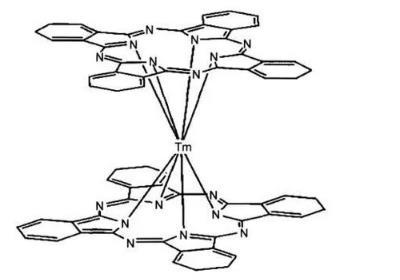 實(shí)驗(yàn)所用材料是由山東大學(xué)化學(xué)化工學(xué)院姜建壯教授提供的三明治型酞菁銩化合物TmPc2,其分子結(jié)構(gòu)如圖1所示。氯仿從市場(chǎng)購(gòu)買,純度為分析純。以氯仿為溶劑,將TmPc2配制成一定濃度的溶液用于LB膜的制備。LB膜的制備在芬蘭產(chǎn)KSV-5000雙槽制膜系統(tǒng)上完成,在恒定的溫度和表面壓力下用水平提拉法制備成LB膜。