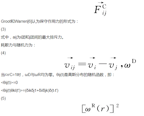 耗散力與隨機(jī)力為:當(dāng)r≥rC=1時(shí),ωD與ωR均為零。θij(t)是高斯分布的隨機(jī)函數(shù),即: