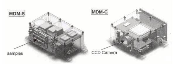 日本計劃在SLATS衛星上搭載環境效應探測器,進行空間環境的監測及材料暴露試驗,這是首次在50 km軌道上開展材料暴露試驗。該暴露試驗通過兩個搭載模塊實施,分別為MDM-S和MDM-C(MDM為MateriasDegradation Monitor的縮寫),其中MDM-S是一個包含9種材料被動暴露試驗的樣品盒,而MDM-C是CCD,用于對暴露試驗中樣品的退化情況進行拍照。