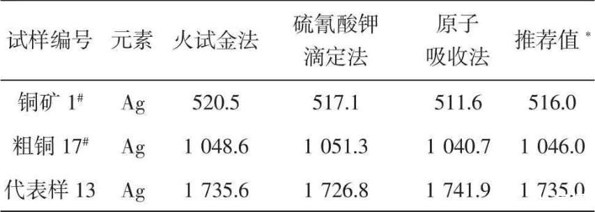 按試驗方法,用不同含量的銅物料樣品進(jìn)行分析,并與其它測定銀元素方法的分析結(jié)果對照,結(jié)果見表4。