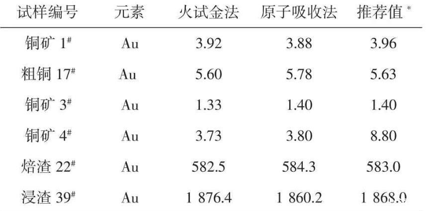 按試驗方法,用不同含量的銅物料樣品進(jìn)行分析,并與其它測定金元素方法的分析結(jié)果對照,結(jié)果見表5。
