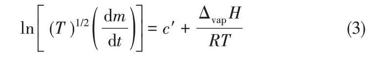 將ln[(T)1/2(dm/dt)]對(duì)1/T作圖,通過(guò)直線的斜率求出ILs的汽化焓ΔvapH。
