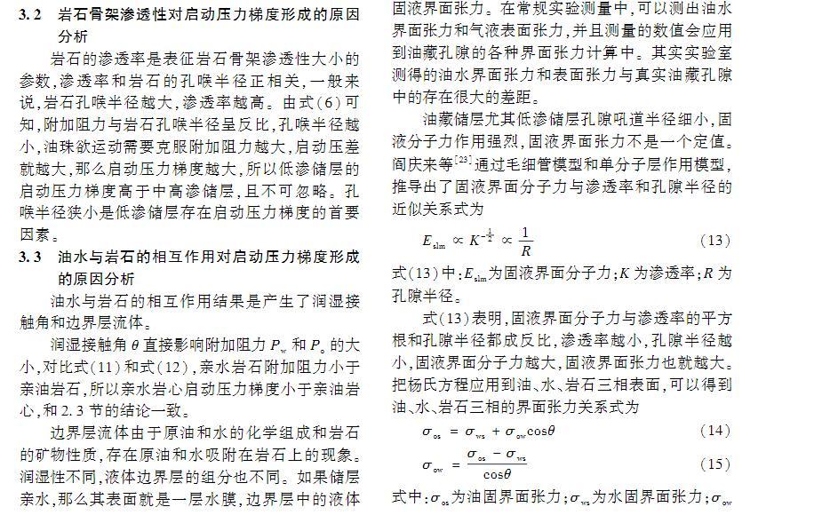 > 油藏儲層油水界面張力是形成啟動壓力梯度的微觀成因