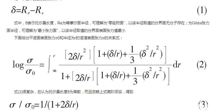 1949年,Tolman在研究表面張力與液滴大小關(guān)系時(shí)引入了后來(lái)被稱為托爾曼長(zhǎng)度的物理量,使問(wèn)題進(jìn)入定量研究階段。