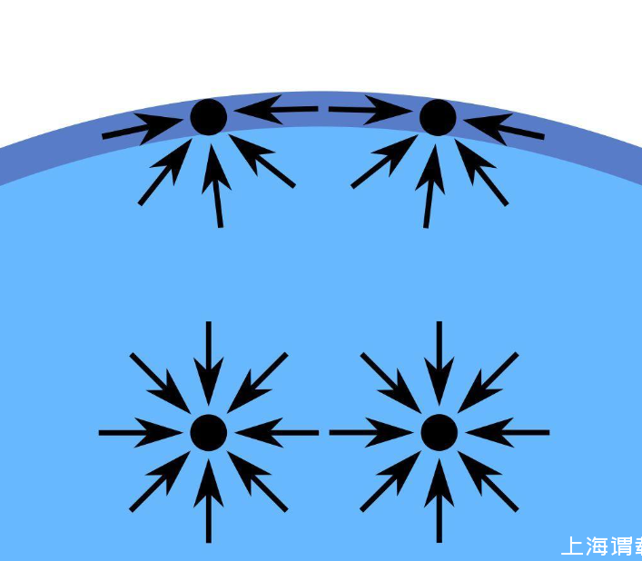 再次,水的表面張力在這里起到了一定的作用。液相與氣相接觸時會形成一個表面層,在這個表面層上的液體分子受到內部液體的吸引力大于外面氣體分子給的吸引力,這些分子就有向液體內部聚攏的趨勢,這種趨勢形成了表面張力。在表面張力的作用下,水面像是一個緊繃的橡膠膜,如果用手掌去拍沒有破除表面張力的水面自然就覺得疼。