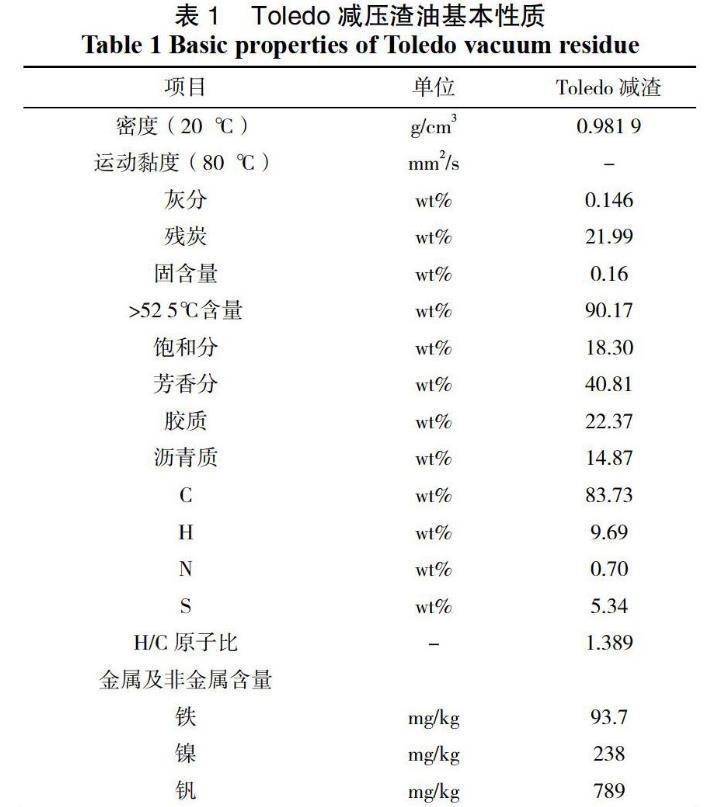 對于懸浮床反應器的研發來說,油品的物性模型需要在與傳統研究中更高溫度以及更高壓力的苛刻條件下建立,這樣就造成了傳統研究中所涉及基本模型不一定正確的后果。準確模型的建立任重而道遠,相關模型的建立還需要更多實驗、理論的探索和研究。本文將以極具代表性的Toledo減渣作為樣本,進行其在懸浮床加氫工藝條件下的界面張力以及黏溫關系曲線的近似模擬和計算。下面表一為Toledo減壓渣油的基本性質如表1。