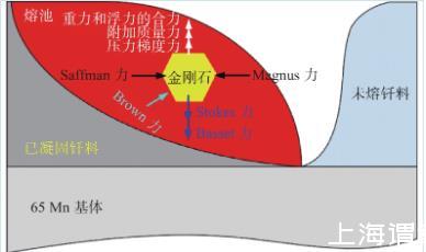 液態(tài)釬料的橫向速度使金剛石顆粒兩邊的相對速度不同,使金剛石顆粒發(fā)生旋轉(zhuǎn),并帶動周圍流體流動,存在Magnus力FM為