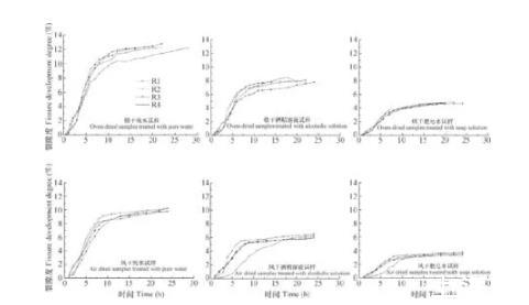 為了探究水中表面活性劑和有機化合物的加入對土壤裂隙發育的影響,本文通過在水中加入少量乙醇或肥皂(表面活性劑)來改變水的表面張力,對干濕循環條件下不同氣—液界面張力的土壤收縮開裂特性展開研究,對比分析了不同表面張力下土壤裂隙的發展演化過程,最后對其機理進行了探討。