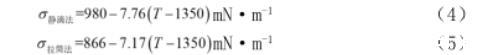 從實驗操作上看,采用拉筒法獲取表面張力,不需要熔體密度值,不需要預熔實驗,但是在測定的過程中無法保證氣氛的無氧化,因此不宜用拉筒法測定易氧化熔體的表面張力。靜滴法雖所需試樣較少,不需用標準物質校正,并且氣氛可控,但需保證預熔樣品成分穩(wěn)定。
