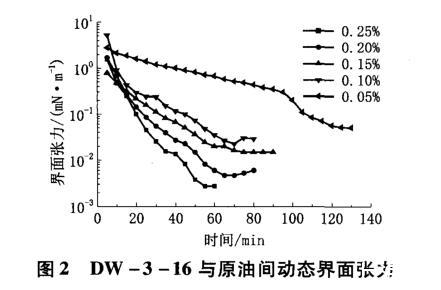 圖2 DW-3-16與原油間動態界面張力