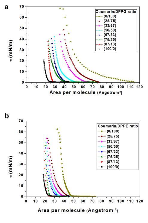 香豆素和磷脂混合物單分子層膜中的分子相互作用的界面性質——結果和討論