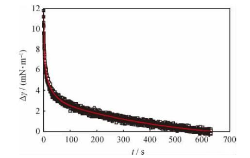 圖1典型的界面張力(Δγ)衰減曲線及其擬合曲線