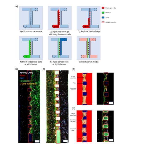 基于表面張力的開放式微流體平臺,利用微柱重建三維肺部細胞微環境
