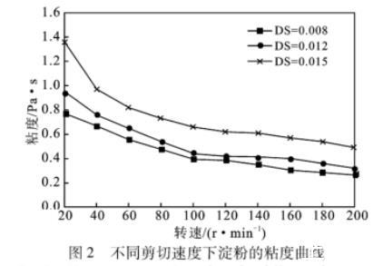 圖2不同剪切速度下淀粉的粘度曲線
