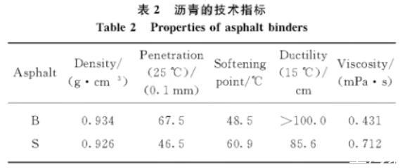 純度1)99.5%的無水乙醇(分析純);70#基質(zhì)瀝青(B);SBS改性瀝青(S);5種表面活性劑:阿科瑪Cecabase 945(W1)、阿科瑪Cecabase Bio 10(W2)、諾力昂Rediset LQ-1102C(W3)、上海龍孚LYE-WMA(W4)、美德維實(shí)偉克M-1(W5),表面活性劑W1——W5摻量分別為瀝青質(zhì)量的0.4%、0.4%、0.6%、0.6%、0.6%.瀝青的技術(shù)指標(biāo)見表2,其中:黏度采用布式旋轉(zhuǎn)黏度法測試,取剪切速率為25s-1時(shí)的黏度值;基質(zhì)瀝青、SBS改性瀝青的密度與黏度的測試溫度分別為135、165℃。