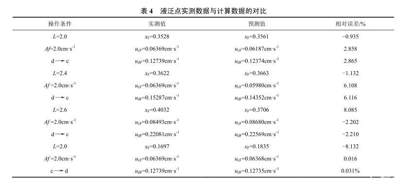 利用式(3)~式(5)計算得到的液泛速率及液泛滯存率與實測值列于表4。