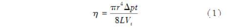 式中:r為毛細(xì)管半徑;t為液體流經(jīng)毛細(xì)管的時(shí)間;L為毛細(xì)管長(zhǎng)度;Vt為t時(shí)間內(nèi)液體所流過(guò)的體積;Δp為液體上下液面的壓力差。毛細(xì)管黏度計(jì)使用方便,但它受剪切速率限制(一次只能測(cè)量對(duì)應(yīng)一個(gè)剪切速率的黏度),并不適合肺液體或者黏液等非牛頓液體黏度的測(cè)量。