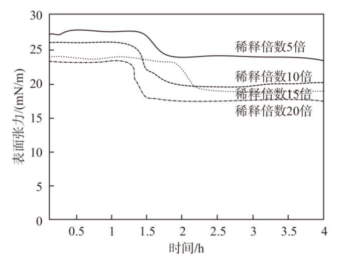 圖4不同稀釋倍數(shù)下表面張力測試結(jié)果對比