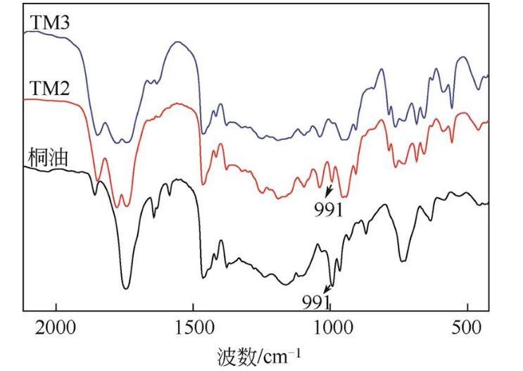 圖1桐油、TM2和TM3的紅外光譜圖