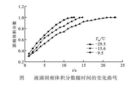 圖3液滴固相體積分數隨時間的變化曲線
