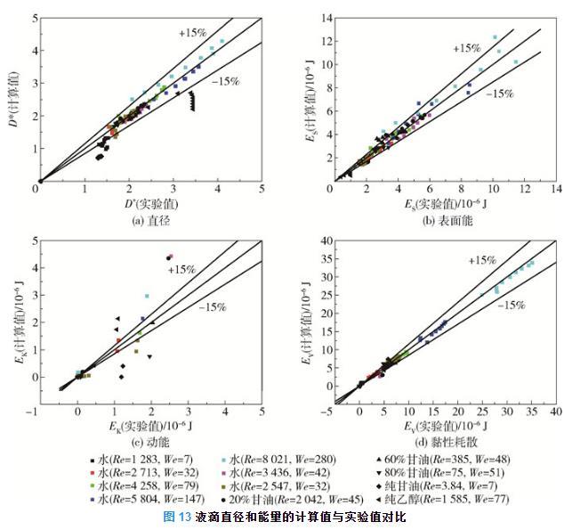 圖13液滴直徑和能量的計算值與實驗值對比