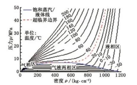 表面活性劑水溶液的密度與純水體系相近,其密度根據飽和水蒸氣溫度-壓力-密度-熱力學參數對照表確定,CO2密度與壓力溫度的關系見圖3。