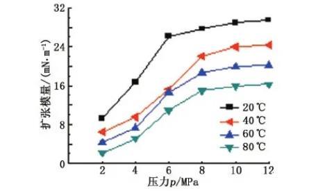 圖7不同溫度下擴張模量隨壓力的變化關系