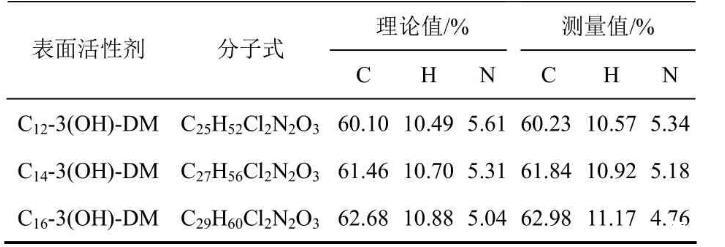 表1 Gemini表面活性劑Cm-3(OH)-DM中C、H和N的含量