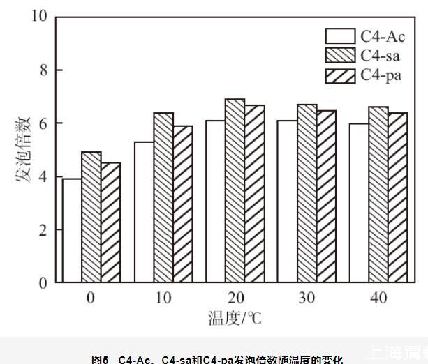 圖5 C4-Ac、C4-sa和C4-pa發泡倍數隨溫度的變化