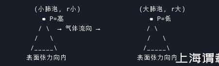 肺泡內表面覆蓋一層極薄的液體(主要成分為水),由于水分子間的氫鍵作用,液體表面存在向內的收縮趨勢,即表面張力(surface tension)。該張力使肺泡傾向于縮小,類似于氣球放氣時的回縮效應。