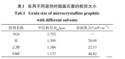 表1采用不同溶劑時微晶石墨的粒徑大小