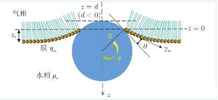 顆粒的水動力學阻力系數取決于顆粒在水相中的浸沒程度(圖5,以顆粒暴露在空氣中的高度d表示)。顆粒的平衡位置取決于重力、浮力及膜施加的表面張力。重力G為: