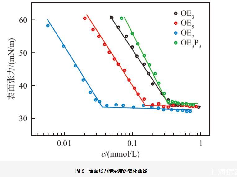 表2油醇烷氧基化物在25℃時的表面活性參數
