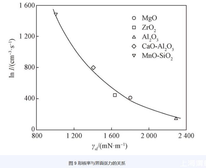 圖9形核率與界面張力的關系