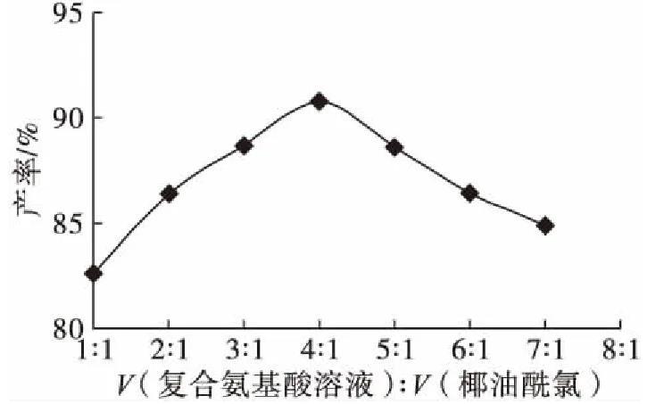 圖1復合氨基酸溶液與椰油酰氯體積比對產率的影響