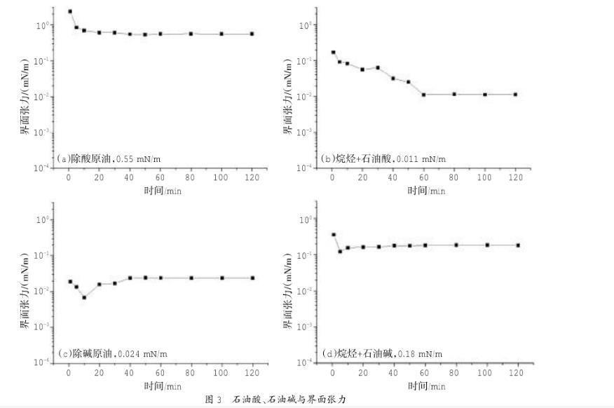 圖3石油酸、石油堿與界面張力