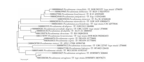 圖1 147菌株16S rDNA基因序列系統(tǒng)發(fā)育樹(shù)