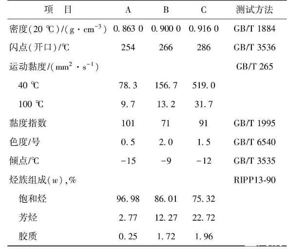 表1基礎油的基本性質