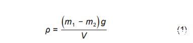式中,m_1為懸掛于電子天平底部密度探頭的質量,g;m_2為密度探頭浸入到待測液體內電子天平的數值,g;g為重力加速度,取9.81 m/s^2;V為探頭的體積,m^3。