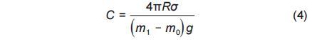 采用拉筒法測(cè)量納米熔鹽液體表面張力前,可通過測(cè)量已知液體的表面張力,通過式(4)對(duì)表面張力實(shí)驗(yàn)臺(tái)的儀器系數(shù)進(jìn)行標(biāo)定。