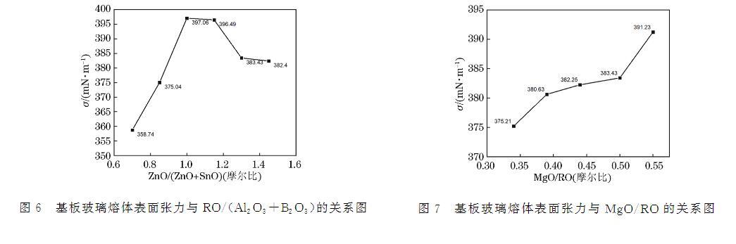 圖6 基板玻璃熔體表面張力與RO/(Al?O?+B?O?)的關系圖