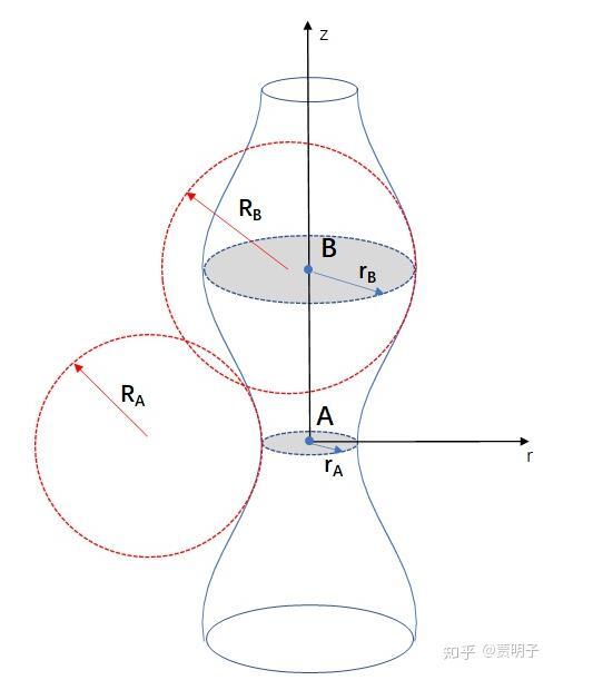 在A點(diǎn),z方向上產(chǎn)生了負(fù)曲率(半徑RA),而r方向上,由于半徑變小,曲率變大。也就是說,A點(diǎn)上的曲率變化產(chǎn)生了兩個(gè)效果: