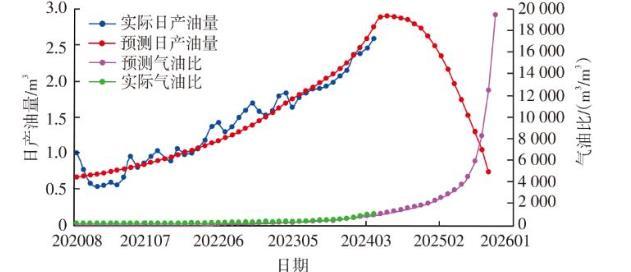 3)模型預(yù)測H3區(qū)生產(chǎn)井開發(fā)動態(tài)與實際生產(chǎn)動態(tài)相符,預(yù)計Y30-101井在2024年8月日產(chǎn)油量達(dá)到2.86 m3,氣油比達(dá)到907 m3/m3,隨后日產(chǎn)油量急劇降低,氣油比快速增加,開發(fā)人員可提前進(jìn)行開發(fā)方案的制定與調(diào)整,防止氣油比快速升高。