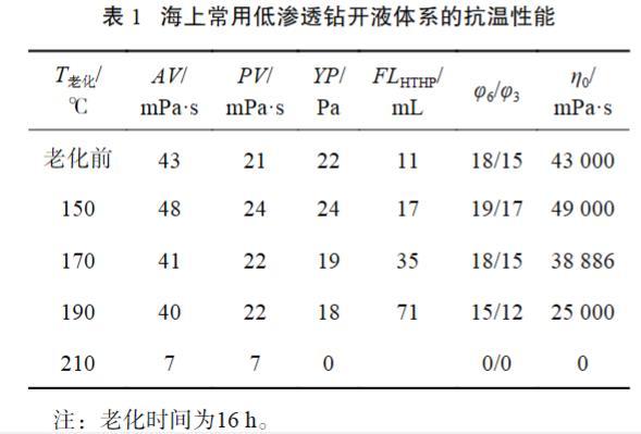 1.2海上常用高溫低滲透鉆開液體系的抗溫性