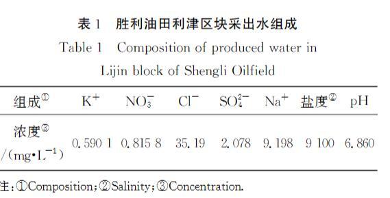 實(shí)驗(yàn)試劑:葡萄糖、檸檬酸鈉、酵母粉、KH2PO4、(NH4)2SO4、MgSO4·7H2O、乙酸乙酯為分析純,購(gòu)自國(guó)藥集團(tuán)化學(xué)試劑有限公司;正己烷為優(yōu)級(jí)純,購(gòu)自Merck公司;二氯甲烷為優(yōu)級(jí)純,購(gòu)自B&J公司;正構(gòu)烷烴混合標(biāo)準(zhǔn):C8—C40包含異構(gòu)烷烴姥鮫烷和植烷,購(gòu)自Accustandard公司;層析硅膠(100~200目)及硅膠層析板購(gòu)自青島海洋化工廠;原油采集自中國(guó)石化勝利油田有限公司利津區(qū)塊;降解實(shí)驗(yàn)用水根據(jù)勝利油田利津區(qū)塊采出水組成配置(見(jiàn)表1),采出水中pH、鹽度用多參數(shù)儀(Manta3.0,Eureka,美國(guó))測(cè)定,K+、NO-3、Cl-、SO2-4、Na+等離子依據(jù)SY/T5523—2016《油田水分析方法》中給出的檢測(cè)方法檢測(cè)。
