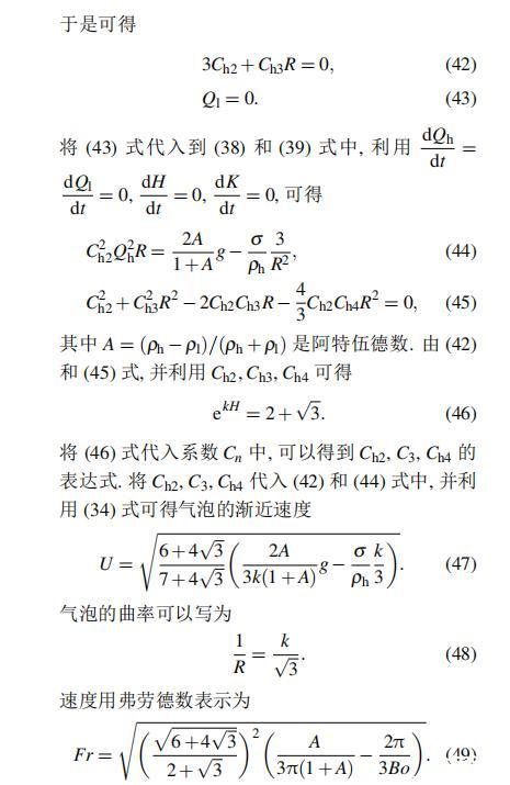 本文將簡單速度勢的Layzer模型和Zufiria模型推廣至非理想流體,并利用兩種模型考慮了界面張力的影響。分別得出了利用簡單速度勢的Layzer模型和Zufiria模型在考慮界面張力情況下Rayleigh-Taylor不穩(wěn)定性非線性演化后期氣泡的漸近解和曲率半徑的解析表達式。定量分析了模型之間的差別。結(jié)果表明:界面張力壓低了氣泡的漸近速度,但卻對氣泡的曲率沒有影響。在考慮界面張力的情況下,簡單速度勢的Layzer模型比復(fù)雜速度勢的Layzer模型給出的漸近速度小,但在阿特伍德數(shù)趨于1時,兩種模型的結(jié)果一致;Zufiria模型的結(jié)果始終小于Layzer模型。