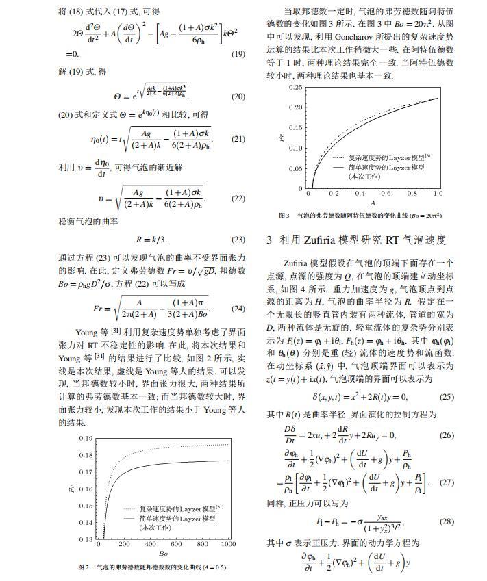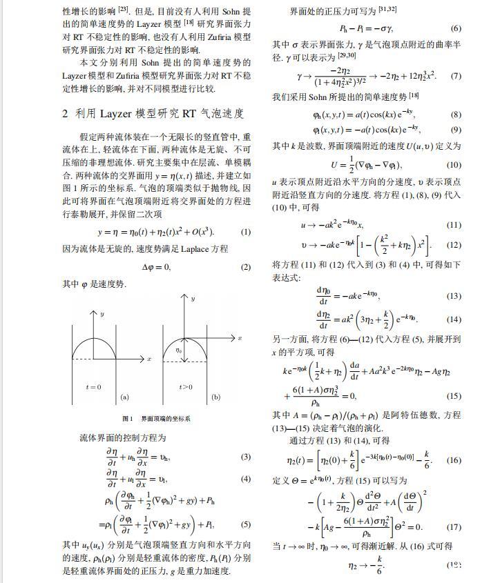 本文分別利用Sohn提出的簡單速度勢的Layzer模型和Zufiria模型研究界面張力對RT不穩(wěn)定性增長的影響,并對不同模型進行比較。