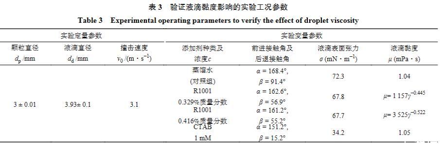 表3驗證液滴黏度影響的實驗工況參數(shù)